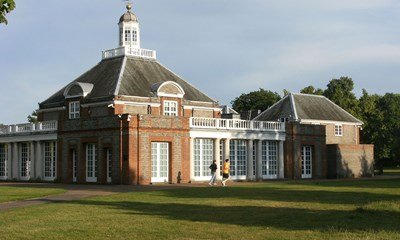 The Serpentine Gallery is an art gallery in Kensington Gardens, Hyde Park, central London. It focuses on modern and contemporary art. The exhibitions, architecture, education and public programmes attract approximately 750,000 visitors a year. Admission is free. Established in 1970 and housed in a classical 1934 tea pavilion, it takes its name from the nearby Serpentine Lake.
