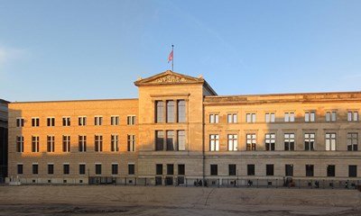 The Neues Museum ("New Museum") is a museum in Berlin, Germany, located to the north of the Altes Museum (Old Museum) on Museum Island. It was built between 1843 and 1855 according to plans by Friedrich August Stüler, a student of Karl Friedrich Schinkel. The museum was closed at the beginning of World War II in 1939, and was heavily damaged during the bombing of Berlin. The rebuilding was overseen by the English architect David Chipperfield.
